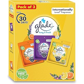 Glade Hang-it Fresh Pack of 3: Fruity, Lavender,Lemon-Internationally Loved Fragrances| Lasts Upto 30 Days| Air Freshener for Home | Room Freshener Pocket Gel for Bathroom, Car, Closet, Toilet