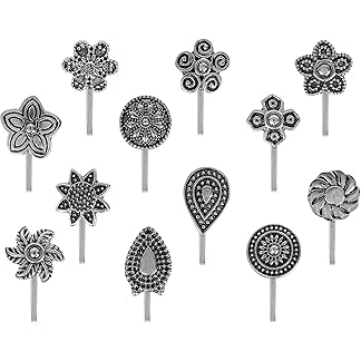 VAMA Oxidised Silver Black Nose Pin Non Piercing NosePin Pressing Clip on Type Ring Stud for Girls Women