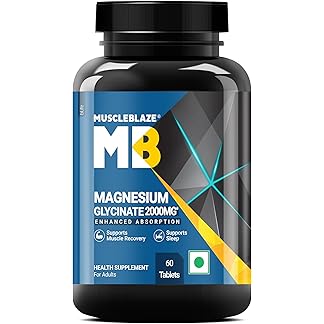MuscleBlaze Magnesium Glycinate 2000mg (440mg Elemental Magnesium) | For Men and Women | 60 Tablets