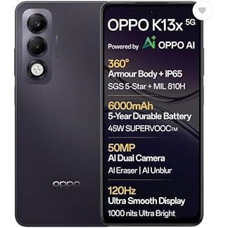 OPPO K13x 5G 6000mAh and 45W SUPERVOOC Charger & AI (Midnight Violet, 128 GB) (6 GB RAM)