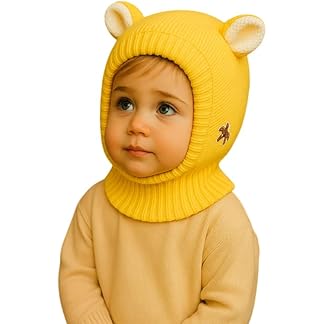 Krystle Kids Winter Knitted Balaclava Hat with Cute Bear Ears – Warm Woolen Cap for Boys & Girls (Multicolor,1-4 Years)