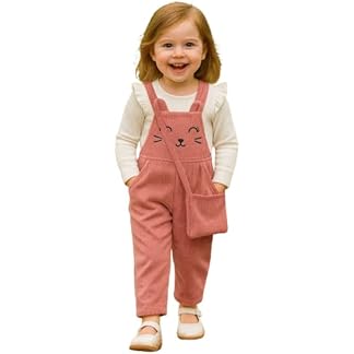 Ninas Baby Girls Solid Cotton Blend Style Top and Dungarees Set with Purse (White & Pink)