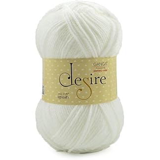 Ganga Acrowools Acrylic Desire Hand Knitting and Crochet Yarn. Pack of 1 Ball – 100Gms. Shade No – Dsr007, White