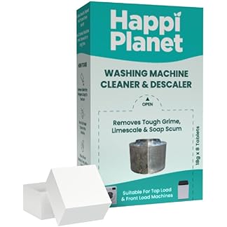 Happi Planet | Washing Machine Cleaner & Descaler Tablets | Removes Tough Grime, Limescale & Soap Scum | 8 Tablets | Used for Top Load & Front Load | Protects Clothes from Residue Damage