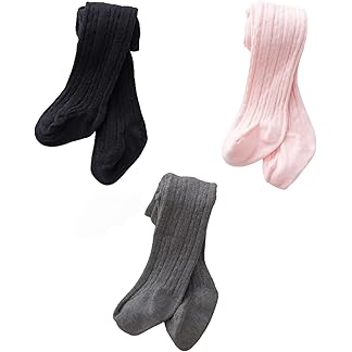 SYGA Baby Tights Soft Cotton Leggings For Girls Toddler Solid Knit Stockings Socks Warm Crochet Pants Pack Of 3