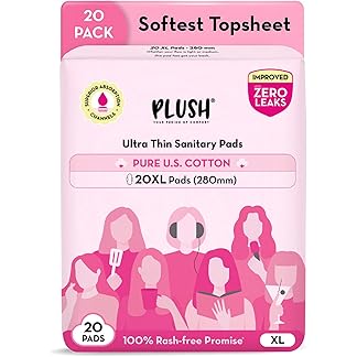 Plush Ultra-Thin Extra Large Sanitary Napkins for Women, 20 Pcs | For Light-Medium Flow | 100% Rash-Free | Pure U.S. Cotton XL Sanitary Pads | No Fragrance | No Toxic-Chemicals