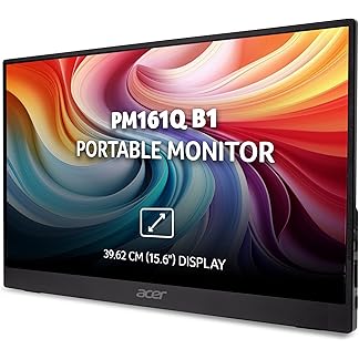 Acer PM161Q B1 15.6 Inch Full HD Portable Monitor (1920×1080) | IPS Panel | 2 x USB Type-C & HDMI | 4 ms | Adaptive-Sync | Ultra-Slim 700 g | Built-in Speakers | Ideal for Laptop, Phone & Travel Use