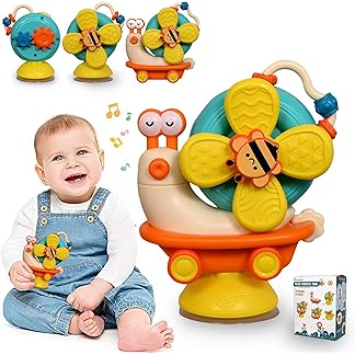 TEC TAVAKKAL Sensory Montessori Educational Toys Cute Animal Food Grade Silicone Baby Bath Toys Suction Cup Spinner Toys Convertible Push-and-Go Car Learning Activities Gifts for Kids