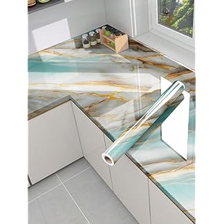 JB’S LAND™ Marble Waterproof Oil Proof Wall Paper Furniture Kitchen, Cabinets, Almirah,Tabletop,Plastic Table, WoodenTable,Wardrobe,PVCDIY Self Adhesive Sticker(60x200cm) (New Desing Golden Line Sky)