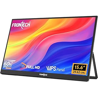 FRONTECH 15.6″ Portable LED Monitor, Full HD IPS, Dual Type-C & Mini HDMI, Built-in Speakers, 180° Stand, Works with Laptop/PS5/Switch/Phone, 1-Year Warranty (MON-0023)