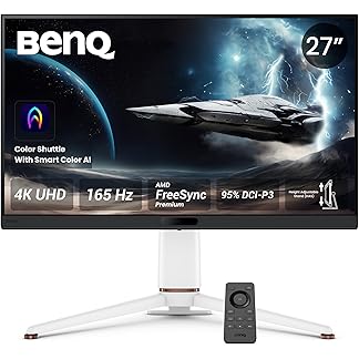 BenQ MOBIUZ EX271U 27” 4K UHD 165Hz Gaming Monitor, 1ms GtG, AMD FreesSync Premium, DP 1.4, HDMI 2.1, 65W USB-C, 95% P3, Height Adjust, eARC (7.1 Channel), KVM,AI Color Adjustment, Remote Controller