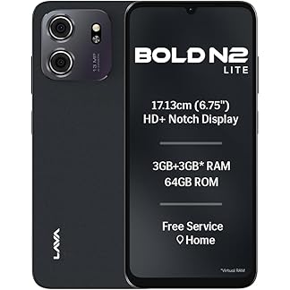 Lava Bold N2 Lite (Nilgiri Blue, 3 GB RAM, 64 GB Storage) | 6.75″ HD+ Display | 13MP AI Dual Rear Camera | 5000 mAh Battery | Secure Face Unlock | Fingerprint Reader | Charger & Phone-Cover in Box