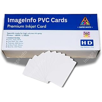 ImageInfo PVC ID Card Super White for Epson Direct ID Card EcoTank L8050 | L18050 | New L8100 Printers – 230 Cards with Premium Inkjet Coated PVC Media.