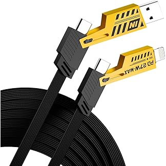 DR VAKU® 4-in-1 Multi Function Fast Charging Cable 65W Braided Durable Data Transfer Dual Type-C & USB-A Connectors Compatible with iPhone, Samsung, OnePlus, Tablets & All USB Devices (1 Meter)