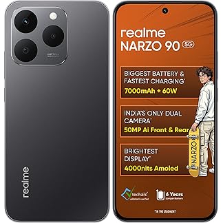 realme NARZO 90 5G (Carbon Black,8GB+128GB) | 7000mAh Biggest Battery | 60W Fastest Charging | 50MP Front & Rear AI Cameras | 4000nits Brightest Display | AI Assist | IP69 Dust & Water Resistance