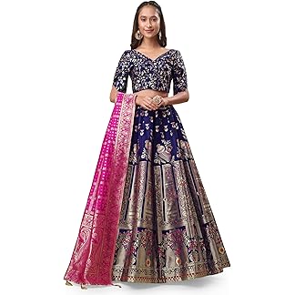 PURVAJA Women’s Jacquard Semi-Stitched Lehenga choli(Lihaaz)