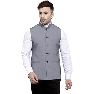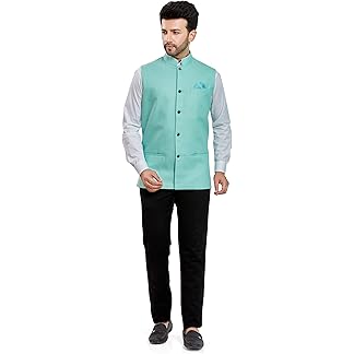 WINTAGE Men’s Poly Cotton Festive and Casual Nehru Jacket Vest Waistcoat