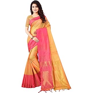 DHRUVI TRENDZ Women Banarasi Cotton Silk saree With Blouse Piece