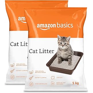 Amazon Basics Scoopable White Bentonite Cat Litter | Unscented | 5Kg – Pack of 2