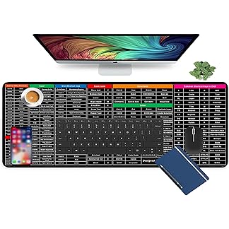 Anti-Slip Keyboard Pad with Office Excel Microsoft Software Shortcuts Key Patterns, Clear Extended Large Cheat Sheet Mouse Pad, Large Rubber Base Mice Smooth Cloth Mouse Pad Desk Mat (80x30cm)