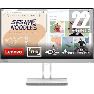 Lenovo L22e-40, 21.4 Inch (54.48 cm), FHD 1920×1080, 75Hz, Grey, 4ms, 16.7Mn Colors, AMD FreeSync, TUV Eye Comfort, Low Blue Light, Smart Display Customization Artery, HDMI Monitor
