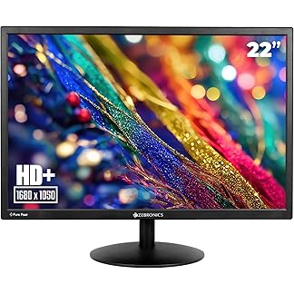 (Refurbished) ZEBRONICS EA122 LED Monitor with HD+ 1680×1050, 2000000:1 Contrast Ratio (Dynamic), 250cd/m² Brightness (max), Wall Mountable, Dual Input HDMI & VGA, 16:10 Aspect Ratio, 16.7M Colors.