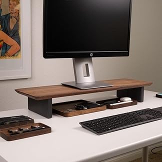 carpentray Store Wooden Monitor Stand with Storage Organizer for Desk with Wire Hole, Tables, Office, Home, Studio, Study Table | Desktop Ergonomic Monitor Stand Riser