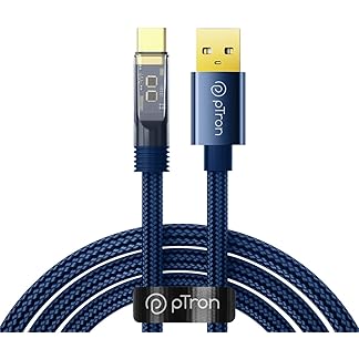 pTron Solero 65W USB to Type-C Super Fast Charging USB Cable Compatible with Samsung,OnePlus,Oppo,Vivo,Xiaomi,Realme & Other Type-C Devices, Unbreakable Nylon Braid, 480Mbps Data Sync Speed (1M,Blue)