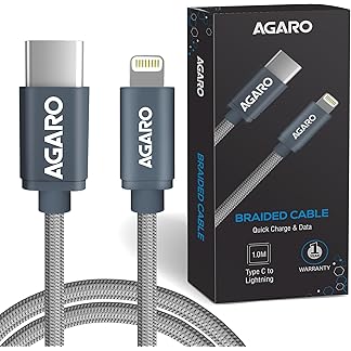 AGARO Type C to Lightning Cable, 1M Unbreakable Nylon Braided Data Sync & Fast Charging Cable for iPhone, Ipad & iPod, Durable & Fast Charging C Type iPhone Cable, Intelligent IC protection