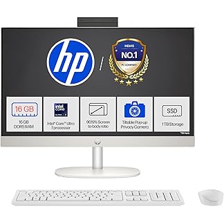 HP All-in-One, Intel Core Ultra 7 155U (16GB DDR5,1TB SSD) IPS, 300 nits, Touch, Anti-Glare, FHD, 27inch(68.6cm), Win11, M365*, Shell White, 6.72kg, FHD IR tilt Camera w/Privacy shuttter, 27-cr1418in