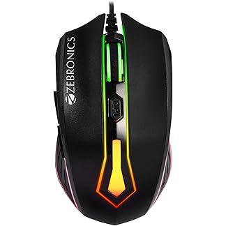ZEBRONICS Sniper High Precision Wired Gaming Mouse with 6 Buttons, Multicolor LED Lights, DPI Switch with 800/1200/1600/2400 DPI’s, Plug & Play, 1 Million Clicks, 87 Grams Light Mouse