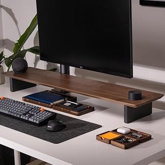 carpentray 80Cm Wooden Computer Long Monitor Stand, Monitor Riser Desk Shelf Desktop Legs Stand TV Laptop Riser with Keyboard Storage Desk (Walnut Finish/Black Legs) (80cm)
