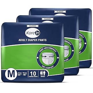KareIn Classic Adult Diaper Pants, Medium 75 – 100 Cm (30″- 40″), 30 Count, Unisex, Leakproof, Elastic Waist, Wetness Indicator, Pack of 3