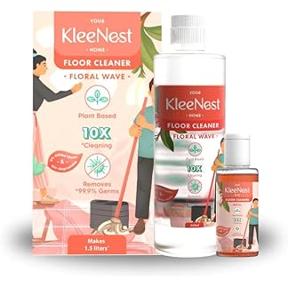 Kleenest 1.5 Litre Starter Kit – Floral Wave Floor Cleaner|Made by 90ml Concentrate|10x Clean, 99.9% Germ Removal| Plant Based, Non-Toxic, Kids & Pet Friendly|Fragrant Cleaner for All Floors