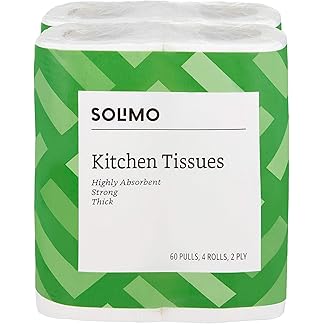 Amazon Brand – Solimo 2 Ply Kitchen Tissue/Towel Paper Roll 240 pulls | 60 pulls X 4 Rolls | soft and highly absorbent | 100% Natural Virgin Cellulose Fiber